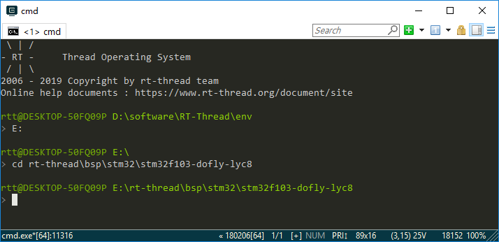 If you use Method 1 to open Env console, you need to switch to the target BSP using the cd command.