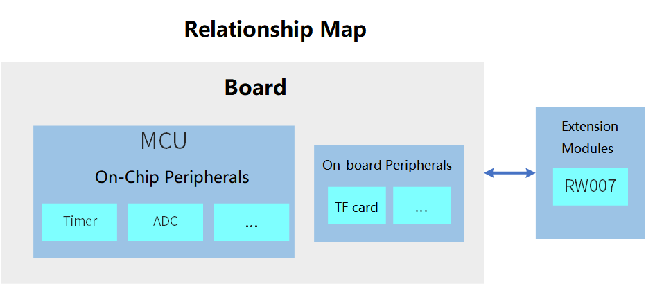 • Board extended module Drivers: Refers to modules of a development board that can be connected via an expansion interface or a DuPont wire, such as an RW007 module